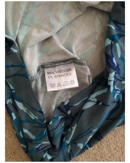 Patra Blue Grey Pattern Dress UK L. Length 97cm. Underarm to underarm - 50 cm.