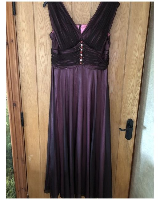 womens wear. Long formal dress . From a smoke and pet free home. Burgundy with pink satin lining. Bead detail at front of dress. Worn once.