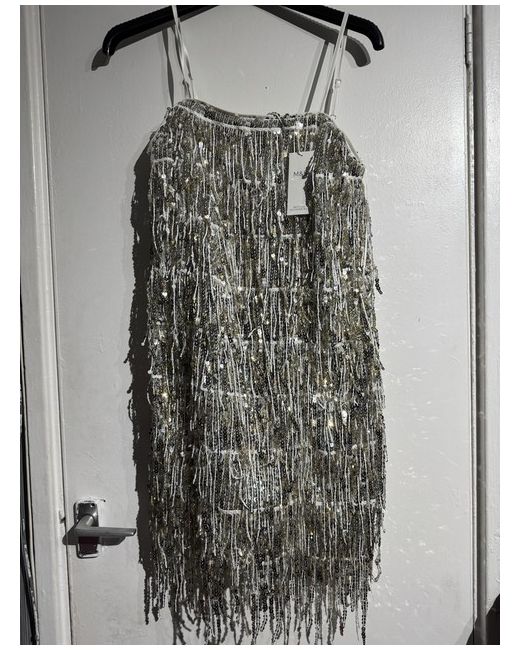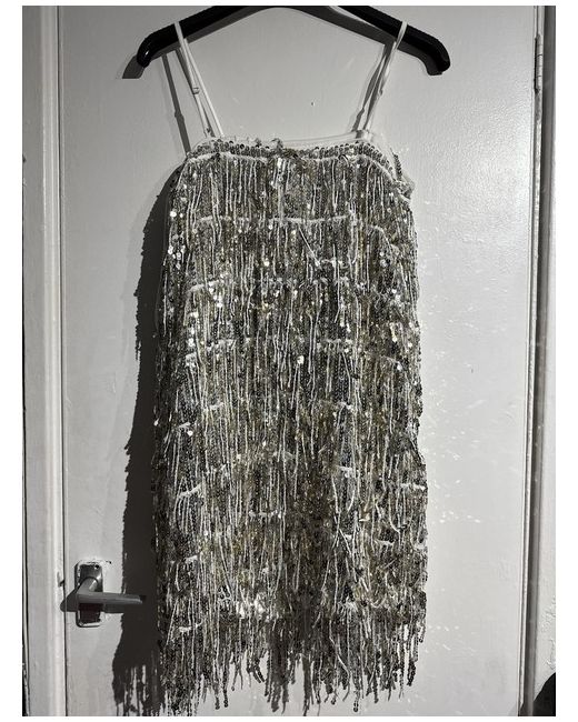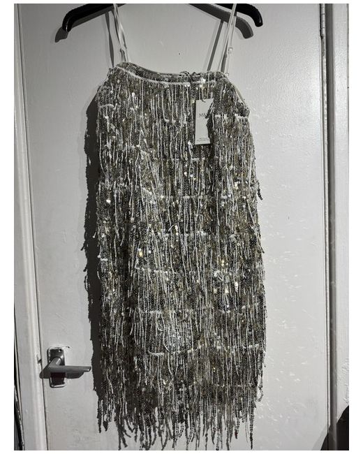 This M&S Women Sequin Square Neck Mini Shift Dress is in a size 12, designed with sleeveless styling and a square neckline for a chic look. The dress features silver and gold sequin embellishments, adding a touch of glamour to the outfit. With a short length and a regular size type, this dress is perfect for special occasions or evening events. The SHIFT brand ensures quality and style in this stunning piece.