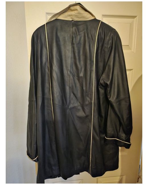 Stunning Ladies Leather Jacket Size 16 Cream Piping Along Cuffs Pockets Collar And Front New With Out Labels Never Been Worn