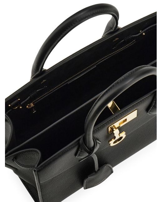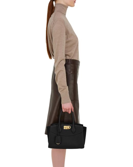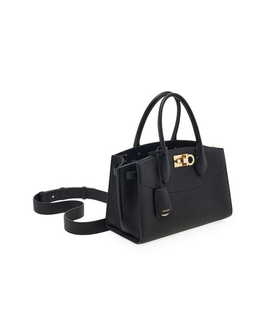 FERRAGAMO's Studio satchel features a sleek design, hammered leather, and a goldtone Gancini clasp. Two top handles Slider clasp closure Leather Made in Italy SIZE About 11"W x 5"H x 7.25"D ABOUT THE BRAND Italian designer Salvatore Ferragamo began his journey in 1927 in Italy with a vision of creating the world's most beautiful shoes. Since its inception, Ferragamo has expanded to include clothing, accessories and beauty under the creative direction of Maximilian Davis-who brings a minimalist-meets-maximalist aesthetic to the brand. Handbags - Ferragamo Handbags > Ferragamo > Saks Fifth Avenue > Barneys. FERRAGAMO. Color: Nero.