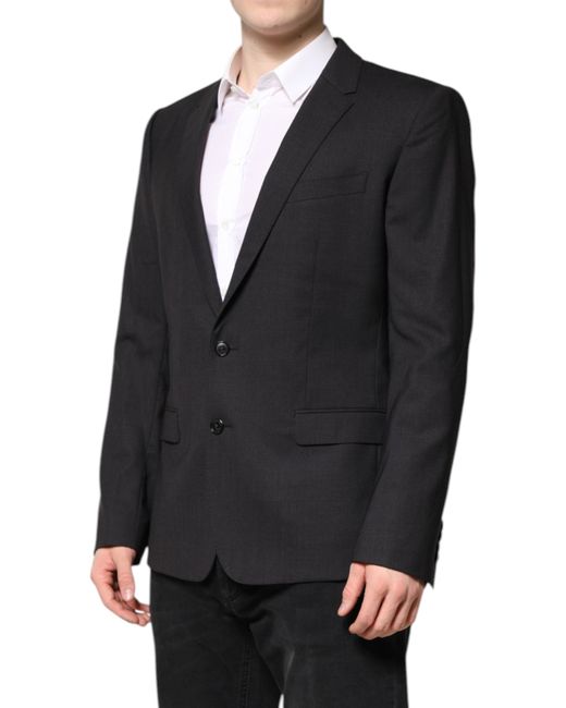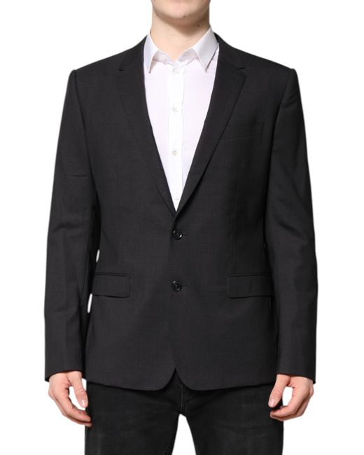DOLCE & GABBANA Gorgeous brand new, 100% Authentic Dolce & Gabbana MARTINI blazer has two button and three pockets. Model: MARTINI blazer suit Style: Single breasted two button Fitting: Slim Color: Dark Gray Material: 97% Virgin Wool 3% Elastane Lining: 46% Viscose 35% Acetate 19% Cupro Three outside pockets and two inside pockets One open vent in the back Logo details Made in Italy Very exclusive and high craftsmanship