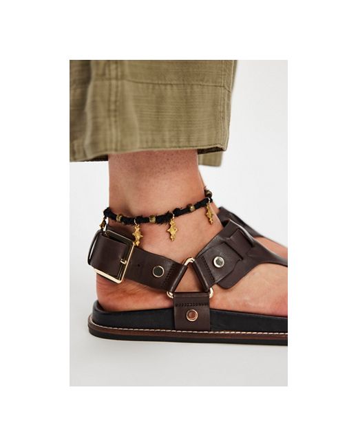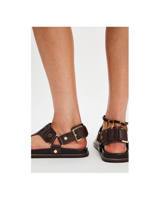 These so-chic sandals feature a smooth leather fabrication, square toe, and adjustable t-strap uppers with hardware accents for an edgy touch. **Features:** Adjustable buckled heel strap, T-strap uppers, smooth leather fabrication, adjustable buckled straps, hardware accents, square toe, contoured footbed, flat rubber soles **Why We ❤ It:** Pair with lightweight, casual pieces for a laidback summery look. Suri Square Toe Sandals by FP Collection at Free People in Bitter Chocolate, Size: US 7.5
