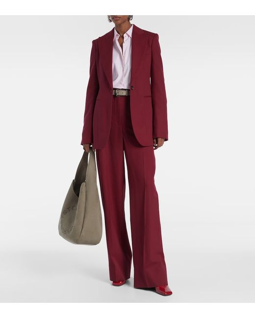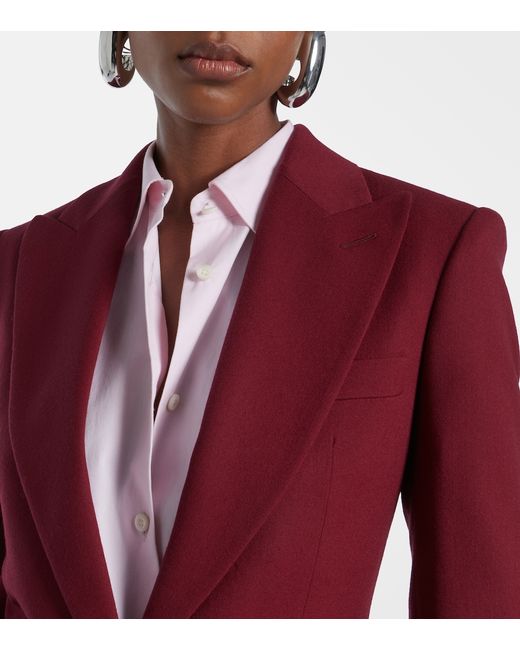 Material: 100% wool. Care instructions: dry clean. Made in Hungary. Designer color name: Jazzberry. Item color: burgundy. Lining: 52% viscose, 48% cotton. Sleeve lining: 100% viscose. Blazer. Peak lapel. Cuff: four buttons. Vent: single. Wool.