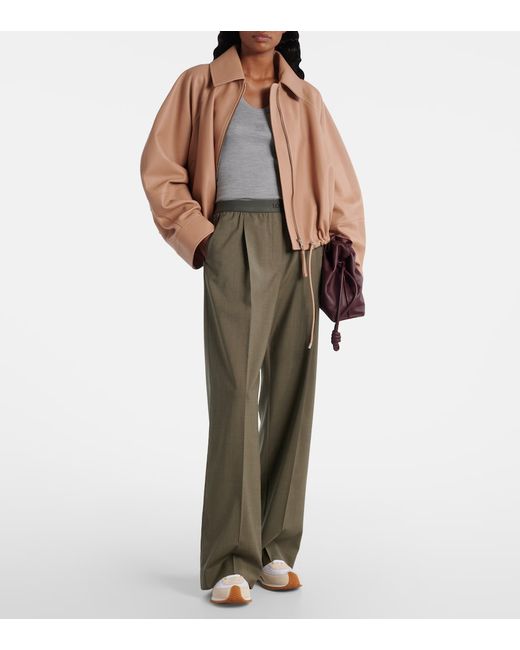 Material: 100% lamb leather. Care instructions: specialist clean. Made in Spain. Designer color name: Beige. Item color: beige. Closure: zipped front. Contains non-textile parts of animal origin. Drawstring waist.