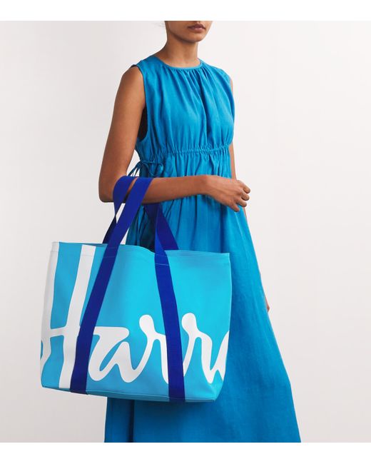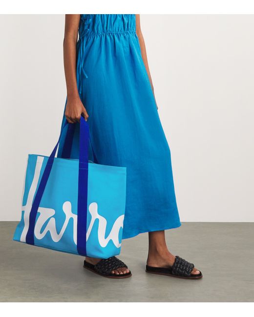 Add a burst of vibrancy to your wardrobe with this tote bag by Harrods, a go-to accessory as ideal for shopping as it is for day-to-day adventures. Crafted from sustainably sourced cotton, its smooth silhouette is highlighted with an energetic rendition of our historic logo.