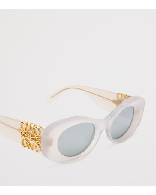 Known for its experimental designs, Spanish brand Loewe injects its signature idiosyncrasy to the beloved shape of these oval sunglasses. Dilated in scale, the bevelled edges of the acetate frame slightly swell towards the temples, giving this pair a riveting presence. Finished off with the iconic Anagram, these sunglasses give a subtle nod to the original branding irons used to mark the brand's leather goods.