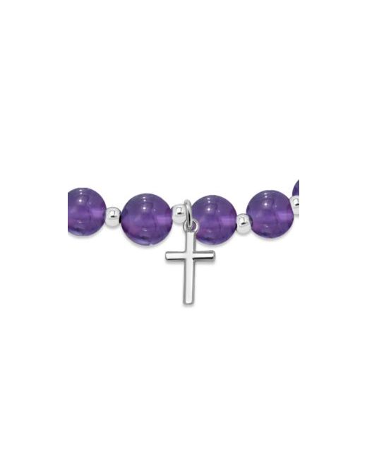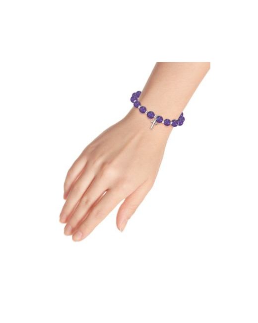 Macy's stretch bracelet is created with 8mm beads, which is said to be a serene healing stone. With a cross charm alternate 3mm Silver Plate Beads, it is perfect for stacking or wearing alone. Created for Macy's.
