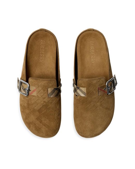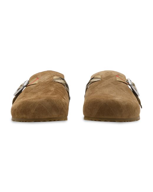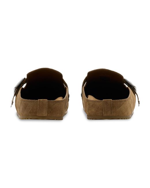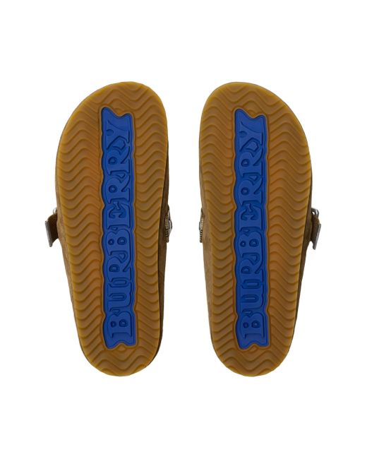 Crafted in Italy from embossed suede, Burberry's Urchin clogs feature a grooved sole subtly marked with archival logo lettering. An adjustable B-buckle strap, intricately jacquard-woven with the distinguished Check, elevates this design. Round toe Slips on Suede upper Leather lining TPU sole Made in Italy ABOUT THE BRAND Founded in 1856 by 21-year-old Thomas Burberry, the brand set out with a mission to stylishly protect against British weather-and Burberry's iconic trench coat was born. In the 1920s, its renowned check pattern was introduced as the coat's lining. Today, under Creative Director Daniel Lee, the heritage brand continues to evolve and create timelessly classic men's, women's and kids' pieces, along with beauty. Men's Shoes - Designer Shoes > Burberry > Saks Fifth Avenue > Barneys. Burberry. Color: Jute. Size: 8.