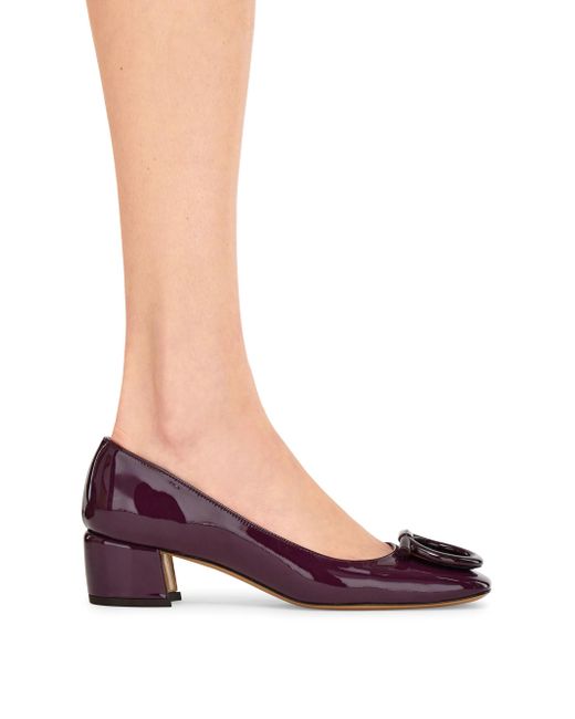 Crafted of patent leather, FERRAGAMO's Mara pumps are designed with an almond toe and a self-covered block heel. This pair, made in Italy, is elevated by the label's signature Gancini buckle on the vamp. Almond toe Slips on Patent leather upper Leather lining Leather sole Made in Italy SIZE Heel, about 1.5" (40 mm) ABOUT THE BRAND Italian designer Salvatore Ferragamo began his journey in 1927 in Italy with a vision of creating the world's most beautiful shoes. Since its inception, Ferragamo has expanded to include clothing, accessories and beauty under the creative direction of Maximilian Davis-who brings a minimalist-meets-maximalist aesthetic to the brand. Women's Shoes - Ferragamo Womens Shoes > Ferragamo > Saks Fifth Avenue > Barneys. FERRAGAMO. Color: Oxblood. Size: 6.