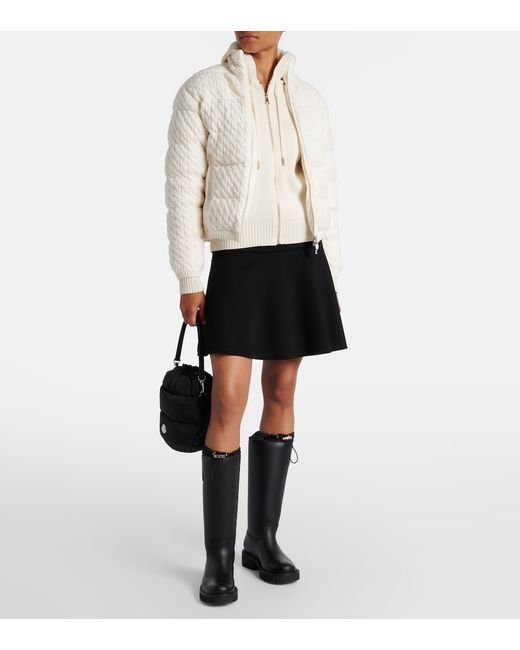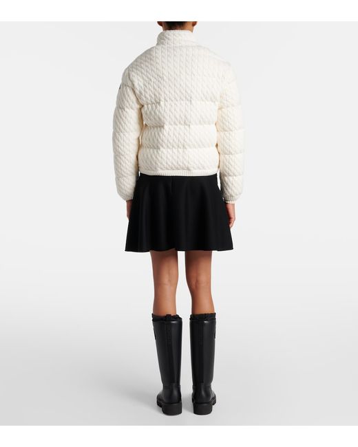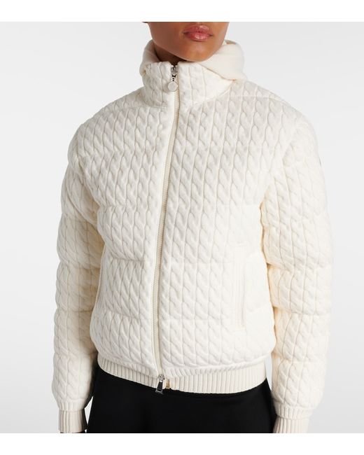 Material: 68% cotton, 32% polyester. Care instructions: dry clean. Made in Moldova. Designer color name: White. Item color: white. Lining: 100% polyamide. Filling: 90% down, 10% feathers. Contains non-textile parts of animal origin. Closure: two-way zipped front. Collar: turtleneck. Hem: knit. Elasticated cuffs. Pockets: snap-buttoned pockets. Cotton.