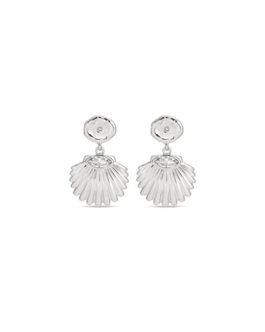 The Santorini Shell Drop Earrings feature a beautifully detailed scallop shell pendant, enhanced with sparkling cubic zirconia crystals. This elegant design adds a subtle coastal-inspired touch with a hint of glamour, perfect for elevating your style with a refined and unique look.