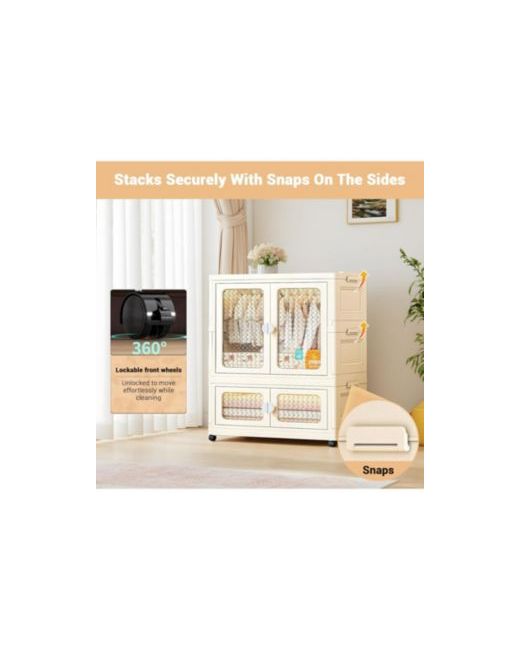 Women's Stackable Storage Bins Plastic Collapsible Containers with Doors Wheels and Hanging Rods Large Lidded Closet Organizers Cabinet for Home Of