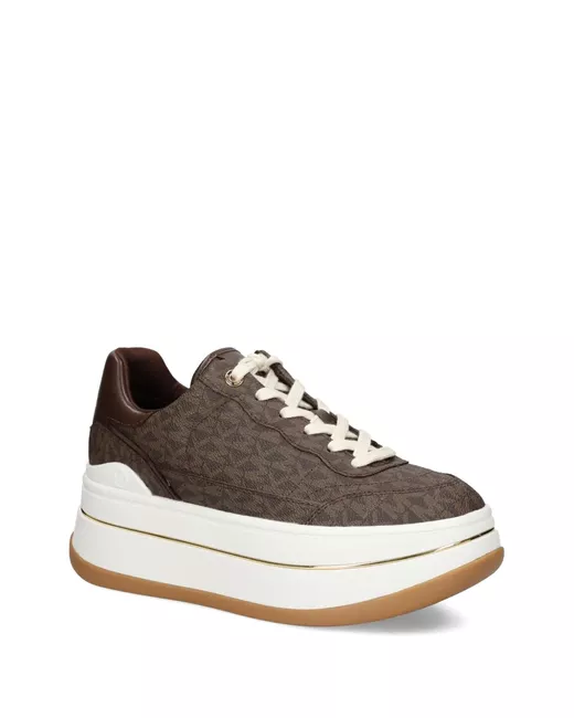 brown monogram pattern front lace-up fastening platform sole contrast rubber outsole gold-tone detailing