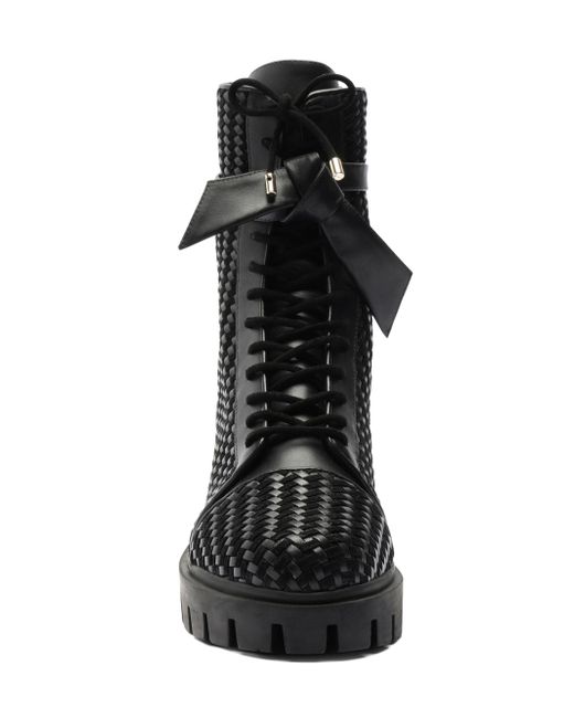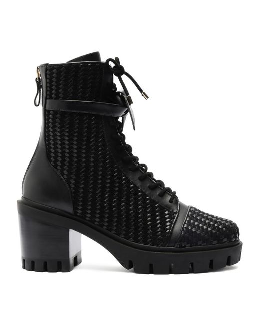 Alexandre Birman's Tresse Combat ankle boots are crafted of suede with semi-shine leather panels and detailed with intricate leather tressé. Round toe Lace-up style Back zip closure Leather upper Leather lining Rubber trim Imported SIZE Heel: about 0.50" (15mm) Shaft height: about 10" (254mm) Leg opening: about 11" (280mm) Please note: This brand fits slightly smaller. Consider ordering a half a size up. Women's Shoes - Designer Classics > Alexandre Birman > Saks Fifth Avenue > Barneys. Alexandre Birman. Color: Black. Size: 7.