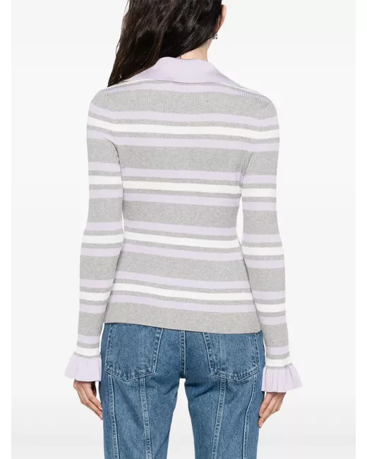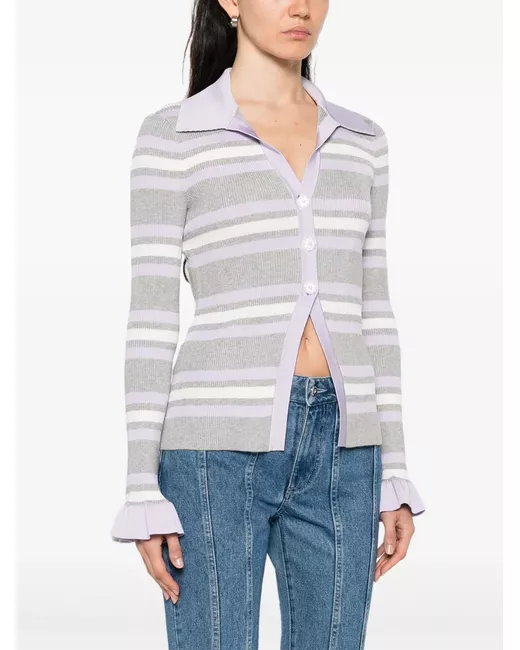 light grey front button fastening spread collar long sleeves ruffle cuffs