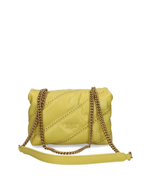 bright yellow studded detailing chain shoulder strap flap closure signature Love Birds buckle