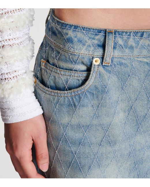 These denim jeans are infused with Balmain's signature sense of flair. The fabric itself is overlayed with diamond topstitching, creating a subtle yet impactful pattern that makes a statement without overpowering your look. The gold-tone button provides the Maison's typical touch of opulence, ensuring these jeans elevate any ensemble.