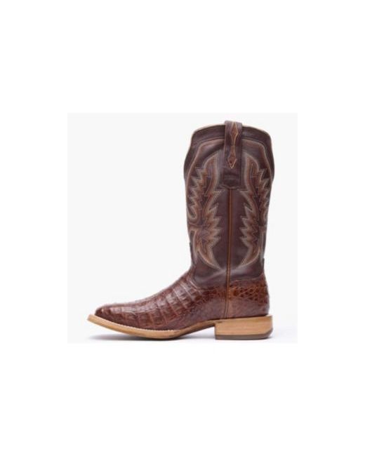 Engineered for rodeo performance, the Prca Collection by Durango is hand-crafted with superior comfort, premium leathers and a low ground feel approved by world champions. The men s 13” Cognac/Cigar style features caiman belly foot, full-grain leather shaft, caiman belly underlay in pull straps, fully leather lined and has a thin leather insole with heel tuck and memory foam. This style also features the patented fiberglass Dually Shank System for twice the midfoot and torsion stability, rolled shank area, hand nailed and stained genuine leather outsole, ¾ genuine Goodyear welt construction and genuine leather welt with double row cotton stitch. This style is finished off with a high-abrasion resistant rubber heel lift, leather stacked heel base, 1 ¼” stockman heel, square toe and has the iconic ProRodeo logo branded inside the shaft and on the outsole of the boot.