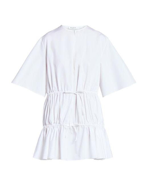 Crafted of Italian cotton, Alaïa's minidress features a tiered ruffle design, crewneck, and wide elbow-length sleeves. Crewneck Elbow-length sleeves Self-tie waist Front hook closure 100% cotton Dry clean Made in Italy SIZE & FIT Model measurements: 5'10" tall Model is wearing a US size 4. Advanced Designer - Adv Couture-alaia > Alaïa > Saks Fifth Avenue > Barneys. Alaïa. Color: Blanc. Size: 2.