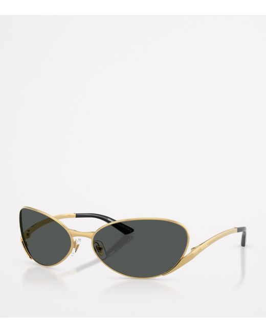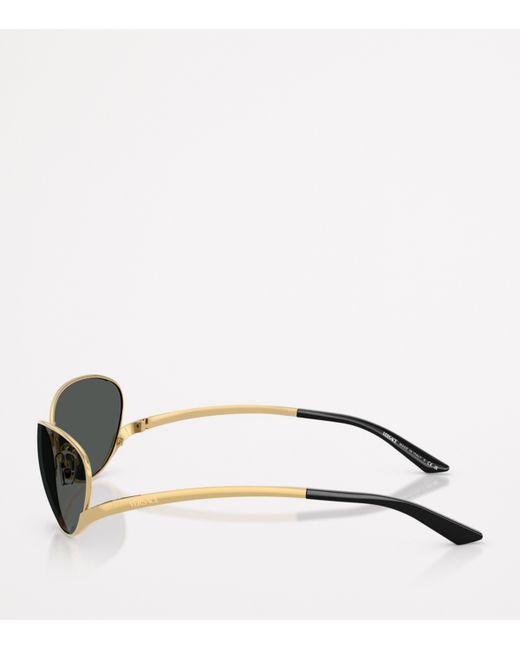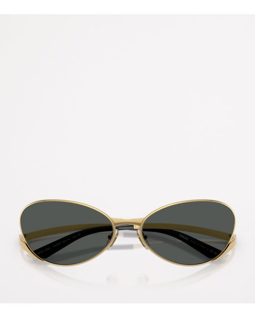 Accessories from Versace always reflect the label's sleek and sophisticated aesthetic. Minimalistic in form, these sunglasses make a statement - cut into an oval with a slight cat-eye effect and, of course, fitted with 100% uv protection to shield your eyes from the sun's rays.