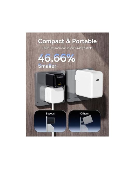 Experience next-level charging performance with the Baseus 45W Usb-c Fast Charger, designed for those who demand speed, efficiency, and safety in one compact solution. Engineered with advanced GaN6 (Gallium Nitride) technology, this charger delivers powerful output in a remarkably small size—46% smaller than Apple s original 30W adapter—making it perfect for home, office, or travel use.