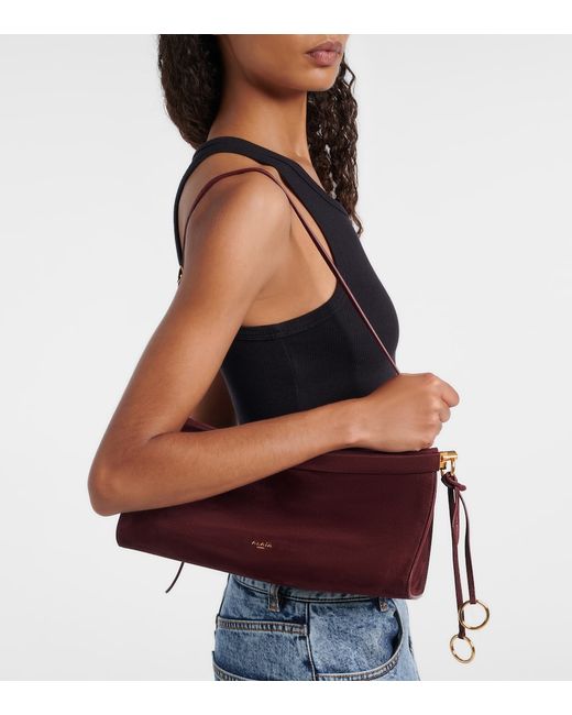 Material: calf leather. Lining: calf leather. Made in Italy. Designer color name: Rouge Grenat. Item color: red. Includes: dust bag. Adjustable shoulder strap. Hardware color: gold. Key fob. Closure: magnetic fastening. Leather.
