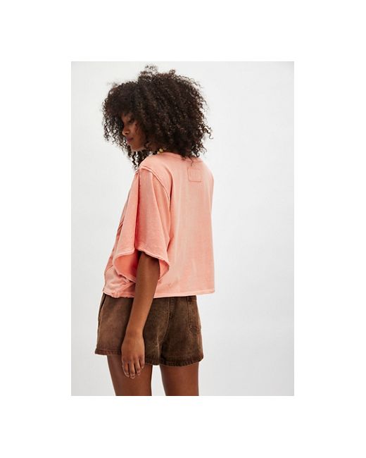 Take your look to the next level with this versatile tee from We The Free, featured in a statement bat-wing silhouette for that intentional slouchy shape. * Boat neckline * Cotton jersey fabrication * Extra-wide dolman sleeves * Boxy fit We The Free Next Level Tee at Free People in Papaya Punch, Size: XS