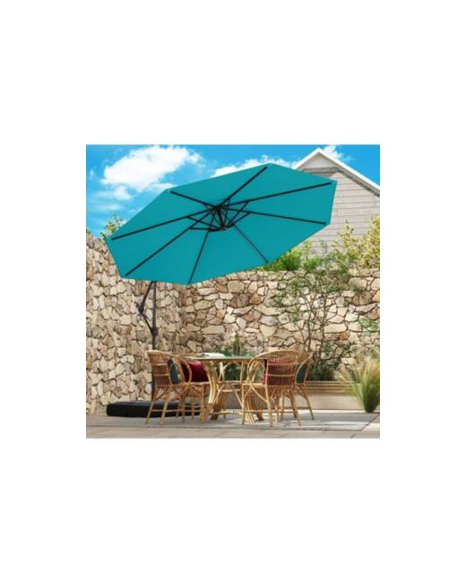 Add flexible shade and modern style to your outdoor space with this offset hanging umbrella, complete with a sturdy base and adjustable tilt function. The cantilever design allows for wide coverage without a center pole, making it ideal for shading lounge chairs, dining sets, or open seating areas. A smooth tilt mechanism lets you easily angle the canopy for optimal sun protection throughout the day, while the included base offers reliable support and balance. Crafted from durable materials that hold up well in outdoor conditions, this umbrella combines everyday practicality with a clean, streamlined look. Whether you're entertaining guests or enjoying a quiet afternoon outdoors, this cantilever umbrella brings comfort and coverage to your patio, deck, or garden.