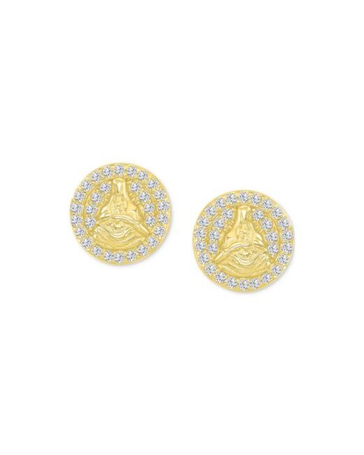 Women's Golden Cubic Zirconia Circle Cluster Disc Stud Earrings Sterling Silver