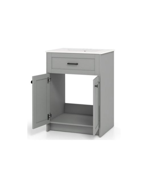 Elevate your bathroom with this vanity unit, combining everyday practicality with a clean, modern look. Designed with a built-in basin and two-door cabinet, this unit offers a compact yet functional solution for organizing toiletries, towels, and cleaning essentials. The smooth surface of the basin is easy to maintain, while the storage area below keeps clutter neatly tucked away behind streamlined doors. Ideal for guest baths, powder rooms, or smaller spaces, the unit features a neutral finish that blends seamlessly with a variety of color palettes and decor styles. Its space-saving footprint and concealed storage make it a smart choice for maximizing efficiency without sacrificing visual appeal. Whether you're updating a main bathroom or outfitting a secondary space, this vanity brings both order and subtle sophistication to your daily routine.