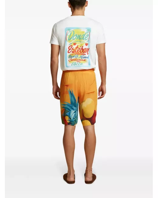 multicolour elasticated drawstring waistband all-over graphic print logo patch to the front rear patch pocket knee-length When buying this unisex item, keep in mind that it is graded in standard men's sizing.