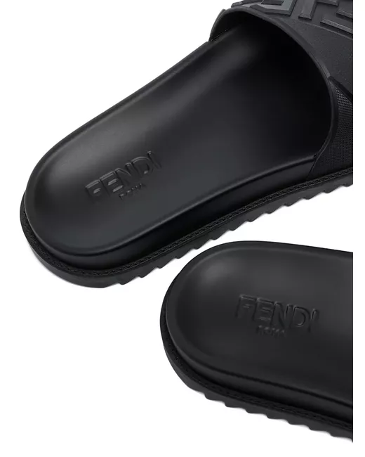black slip-on style open toe moulded footbed FF motif logo-embossed strap ridged rubber sole