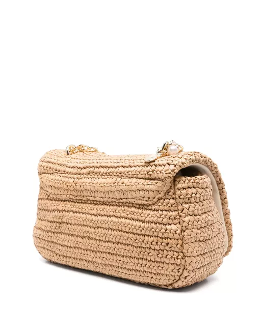 sand beige foldover top with magnetic fastening chain-link shoulder strap main compartment interwoven design