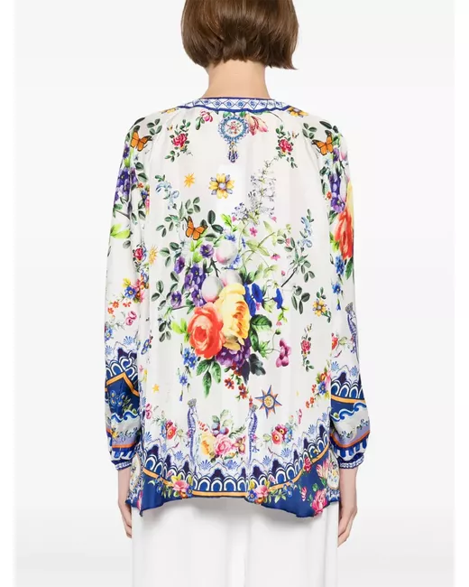 white gathered tie neck long raglan sleeves elasticated cuffs crystal embellishment