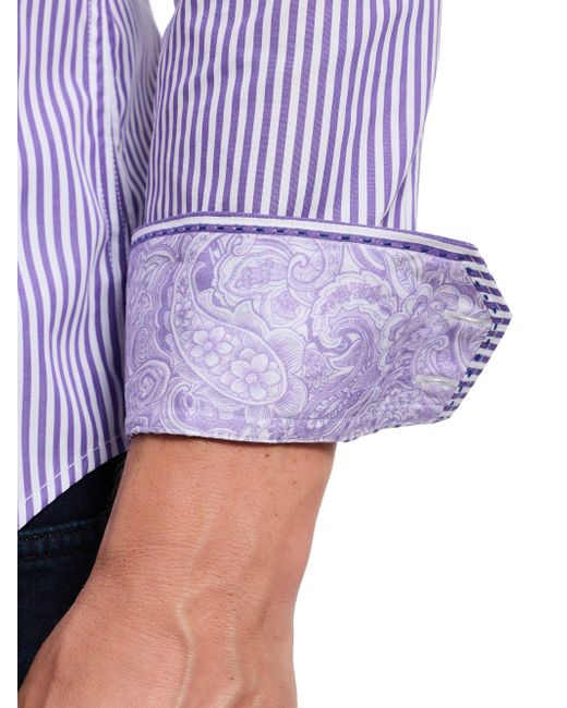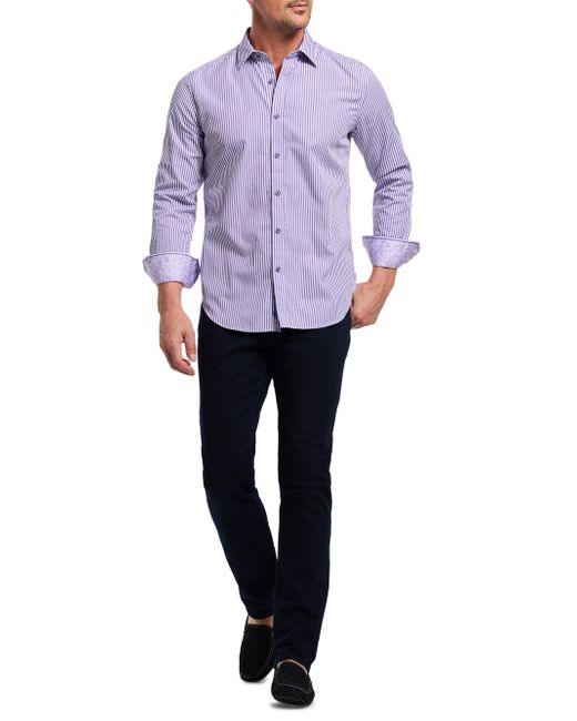 A striped print elevates this Greenwich stretch cotton shirt from Robert Graham. This style features a spread collar, long sleeves, and button-front closure. Spread collar Long sleeves Button-front closure 98% cotton/2% spandex Machine wash Imported SIZE & FIT Model measurements: 6'2" tall, 40" chest, 31" waist Model is wearing a US size Medium. Mens Modern Coll & Outer - Contemp Classic Collecti > Robert Graham > Saks Fifth Avenue > Barneys. Robert Graham. Color: Purple. Size: Small.