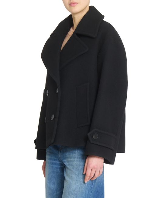 Crafted of an Italian wool blend, Chloé's double-breasted coat features an oversized, cropped look, side welt pockets, and button-tab cuffs. Notch lapels Long sleeves, button-tab cuffs Side welt pockets Double-breasted button-front closure 80% wool/20% polyamide Lining: 62% viscose/38% cotton Button: 100% asian water buffalo horn Dry clean Made in Italy SIZE & FIT Model measurements: 5'10" tall Model is wearing a US size 4. Advanced Designer - Chloe Rtw > Chloé > Saks Fifth Avenue > Barneys. Chloé. Color: Black. Size: 2.