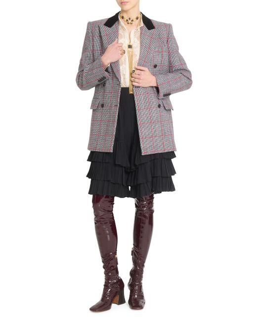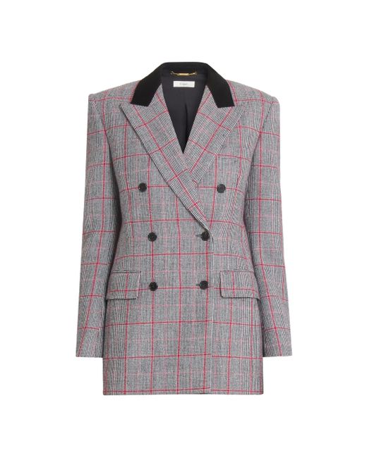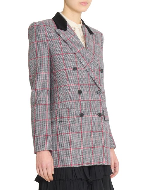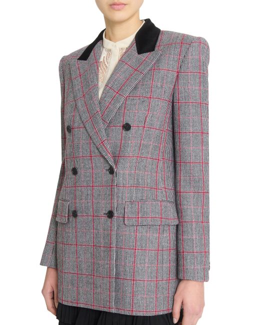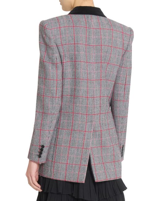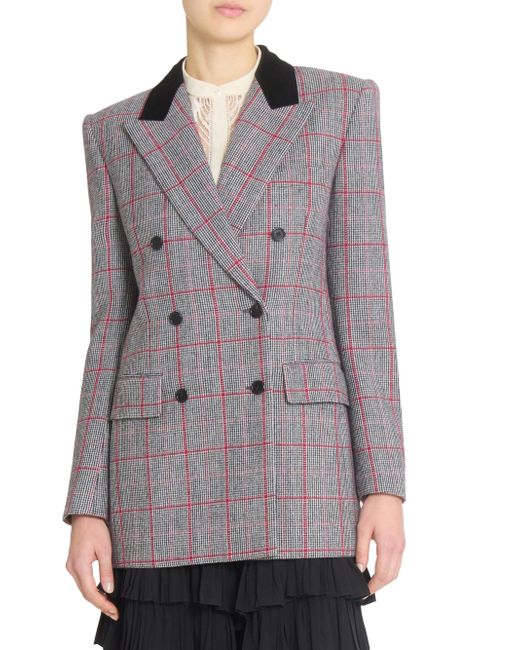 | NET-A-PORTER | Chloé Double-Breasted Velvet-Trimmed Checked Wool Blazer |