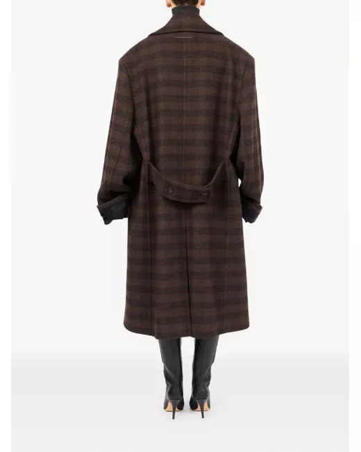 brown checked pattern wide notched lapels double-breasted front flap pockets long sleeves