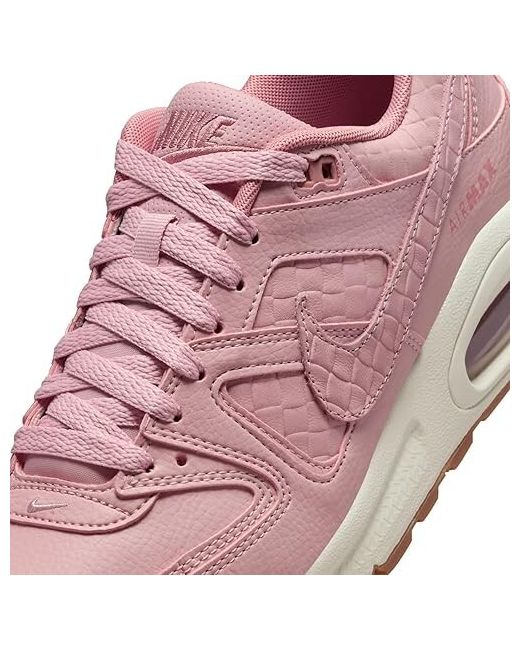 The rubber outsole, designed with a waffle pattern, ensures excellent traction and durability, suitable for various surfaces. The Nike Air Max Command Premium WMNS in Pink Glaze / Sail is a standout pair of sneakers, blending a vibrant palette with the iconic Air Max design.