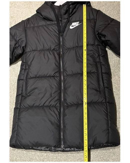 Nike reversible black puffer coat with 2 x front pockets, attached hood and zip closure.