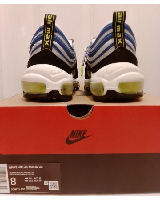 NIKE AIR MAX 97 OG. Sporting the iconic Nike swoosh on the side and made in Indonesia, these sneakers belong to the Nike Air Max product line and were released in 2022. These low-top sneakers feature a classic lace-up closure and Nike's signature Air Max technology for ultimate comfort during gym workouts or running errands.