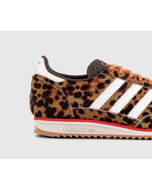 The adidas Originals SL72 OG Leopard Dark Brown / Off White / Semi Impact Orange trainers in UK size 6 are a stylish and versatile choice for women. Made with a combination of leather and textile upper material, these sneakers feature a comfortable foam insole and rubber outsole for durability. The slip-resistant, lightweight, and breathable design make them suitable for a range of activities including cycling, hiking, and running, while the moisture-wicking and water-resistant features ensure they are practical for all seasons. Perfect for those who appreciate both style and performance in their footwear.