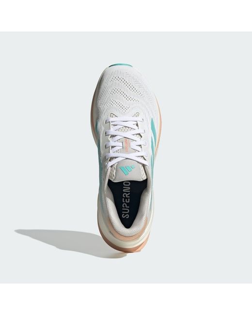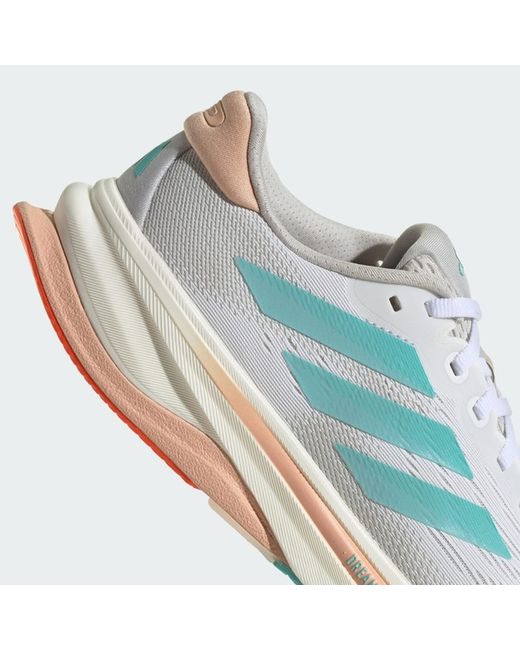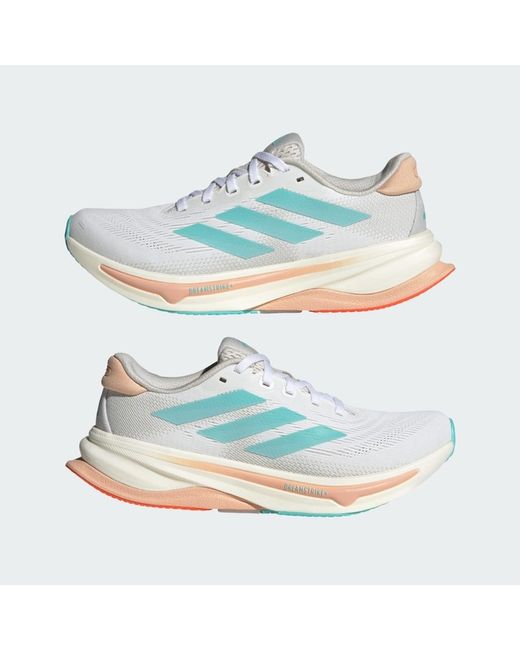 Stable, cushioned running shoes for daily runs of any distance. Product colour: Cloud White / Flash Aqua / Powder Coral. Textile lining. Adiwear outsole. Midsole drop: 10 mm (heel: 34 mm / forefoot: 24 mm).