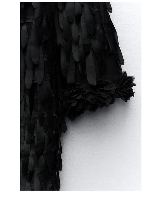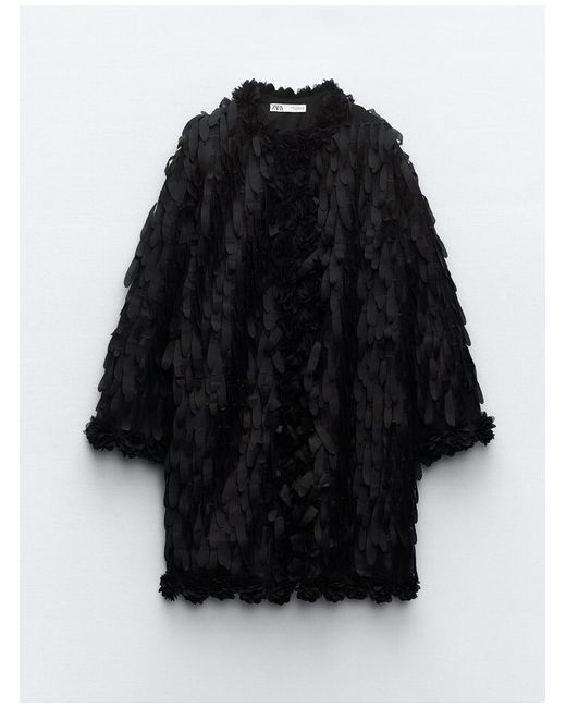 ZARA Black Floral Textured Coat Jacket Size Oversized Ref 2488/111. Condition is New with tags. Dispatched with Royal Mail 2nd Class.