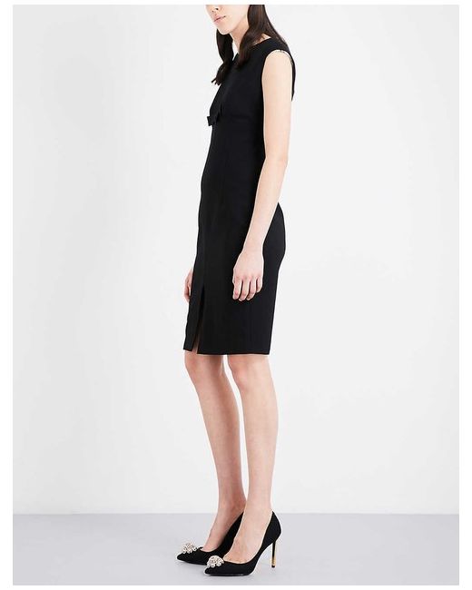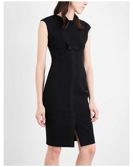 Super-chic little black dress from Ted Baker ideal for 9-to-5 dressing and beyond. Accented under the bust with a demure grosgrain ribbon bow, with identical trim extending down the centre front and back.