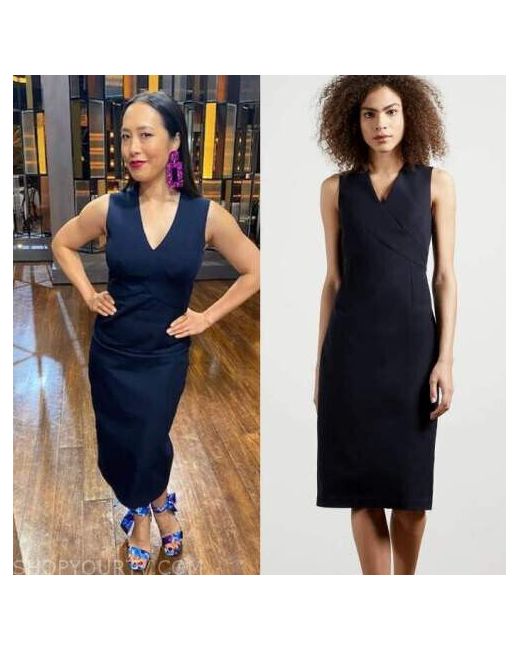 Gorgeous pencil sheath bodycon dress from Ted Baker ideal for a range of occasions. Constructed of a substantial cotton-blend twill fabric in dark midnight blue. Perfect for a range of cocktail, formal, prom, party, races, wedding, and evening occasions.