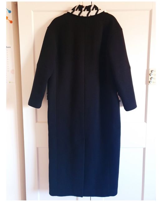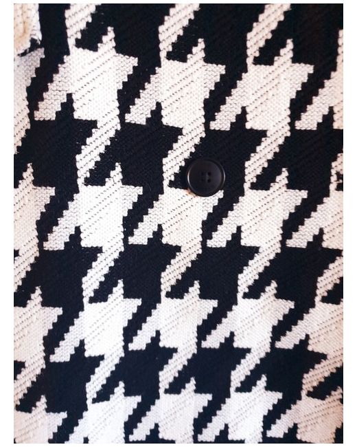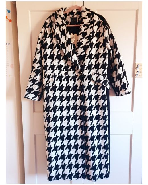 An oversized collar and button fastening are is sure to keep you cosy while making an impact. Houndstooth print. Flood length. Wool blend.