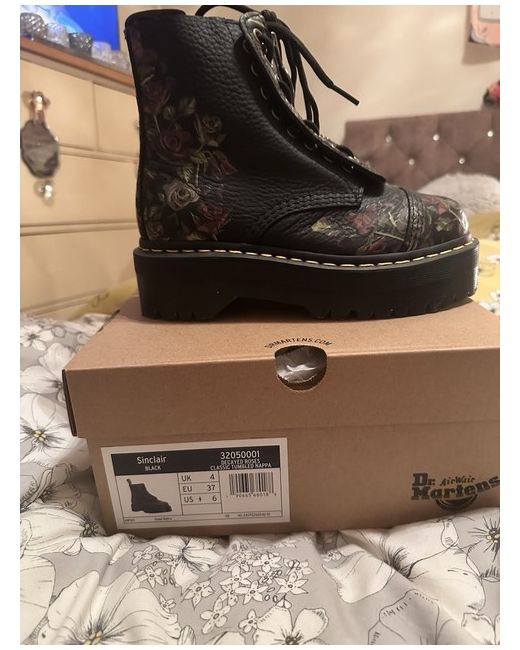 The Dr. Martens Sinclair Boots in a stylish Biker style feature a unique Decayed Roses theme, adding a touch of edginess to the classic design. Crafted from black leather, these Women's Boots in UK size 4 showcase a rebellious yet elegant look. Perfect for those looking to make a statement with their footwear, these Dr. Martens boots are a versatile choice for any fashion-forward individual wanting to stand out from the crowd.