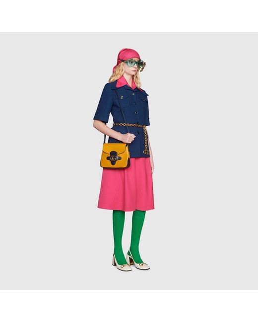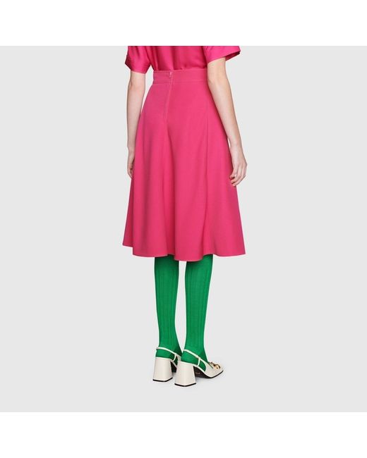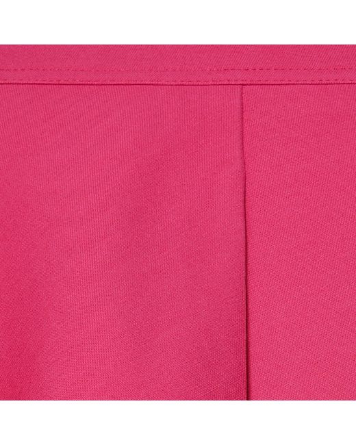 Dark pink crêpe wool silk. 53% Silk, 47% Wool. Length: 27.2" based on a size 40 (IT). The model is 5'6" and is wearing size 40 (IT). Back zip closure.